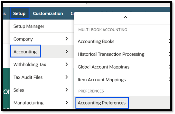 5.「設定」>「会計」>「会計プリファレンス」に移動してレート・プロバイダーを選択します。
