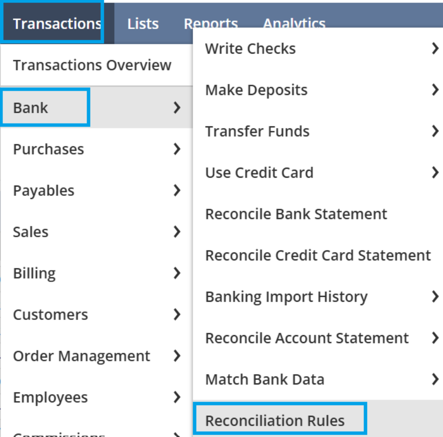 - 「トランザクション」>「銀行」>「照合ルール」に移動します。