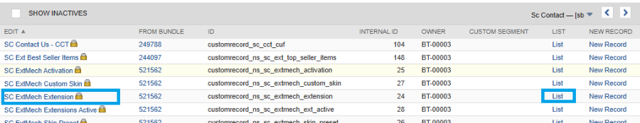 - SC ExtMech Extensionを検索し、「リスト」リンクをクリックします。