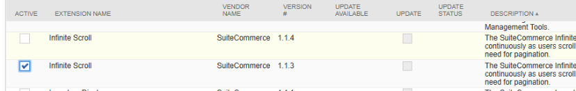 - 最新バージョンのチェックボックスをオフにします(例: Infinite Scroll 1.1.4)。
