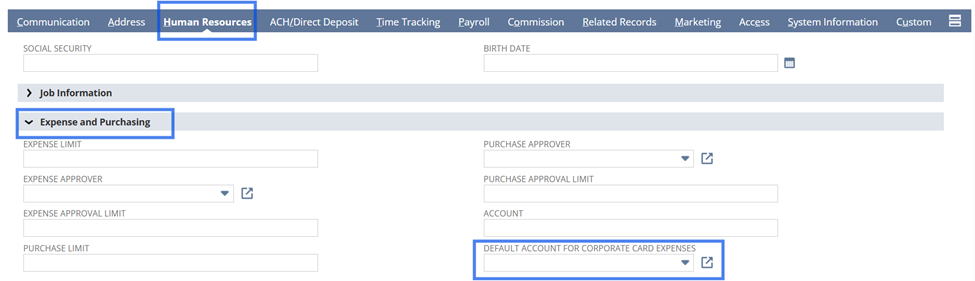 NetSuiteの始め方|従業員レコードを介したコーポレート・カード経費のデフォルト・アカウントの設定