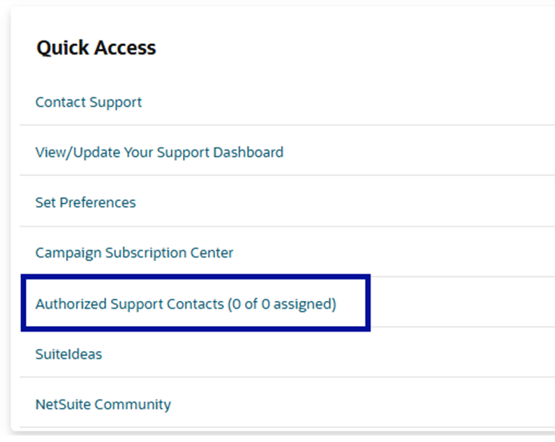 - NetSuite 360ページで、「クイック・アクセス」ポートレットに移動し、「認定サポート担当者」をクリックします。