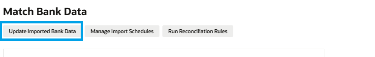 プラグインが対応している場合、ユーザーは「Match Bank Data」ページから「Update Imported Bank Data」ボタンを使用して、インポート済みの取引記録を直接更新できます。これにより、次回のスケジュールされたインポートを待つことなく、最新データを手動で取得することが可能になります。