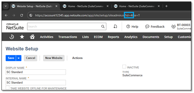 サイトIDは、Webサイト設定ページのWebアドレス・バーにあります。