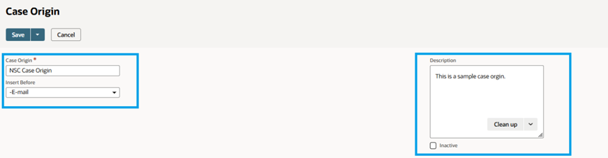 - 「ケース発生元」フィールドで、このケース発生元タイプの名前を指定します。