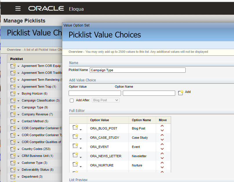 Replication - Eloqua Picklist Data