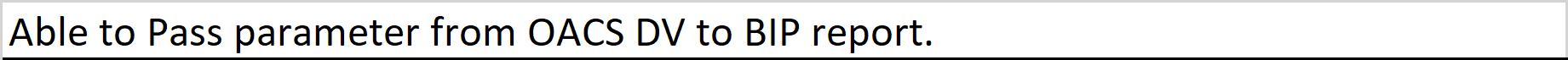 we were trying if there is a way to pass the parameter from OACS DV to BIP report. But we were not able to figure it out.