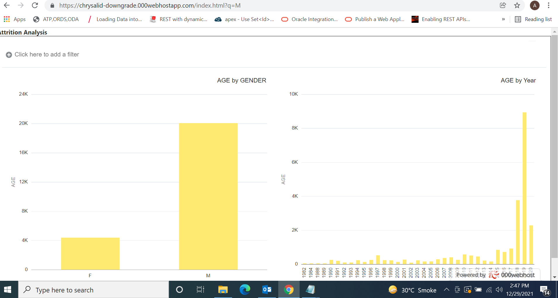 After creating the data action and pasting it on the respective graph, this is how it is being represented inside the web page. If you see the URL of the above screenshot carefully, it is passing values as M,F and its showing as per OAC display.