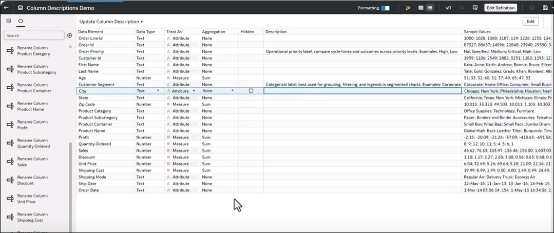 This would also to replicate functionality that already exists for Subject Areas measures to be replicated for external datasets. Sample tool-tip offered by DV for measures below: