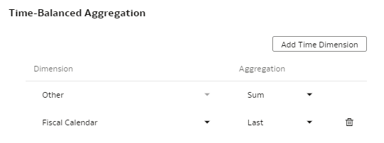 • The Balance Amount metric aggregates by Fiscal Period Set and Fiscal Period Sort Key.