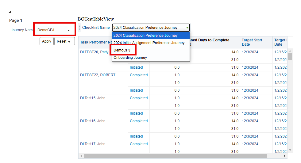 When I select a value from JourneyNamePrompt I want to filter the results in BOTestTableView.