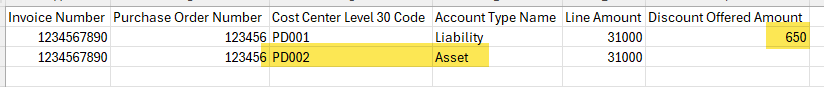 The cross join between invoice header level field and GL activity is not working the same as out of the box ERP/OTBI cross join. When using FDI out of the box subject areas, we can only display invoice header line with the accompanying liability GL account. We have a business need to display invoice header field with the associated asset account. We would like this functionality to be the same in both ERP and FDI reporting. Below is an example of where the invoice header field is not repeating across the GL accounts.