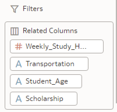 In your example, your source viz(one on which CI is invoked) already has transportation_type and age as part of it's context. Adding them to related columns is futile as the algorithm will ignore it (reason- your source viz is already showing you the distribution by these attributes. No point in CI showing you this distribution again).