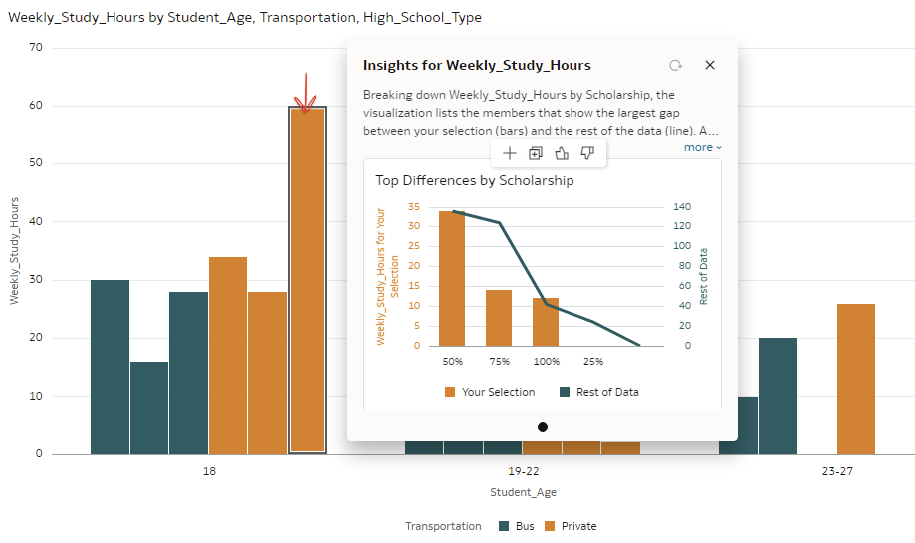 So in this case, CI has only Scholarship as a candidate column and it shows an insight using this attribute. If you have more attributes in your dataset, you can add them to related columns and you should see more insights in the CI panel. Hope this helps