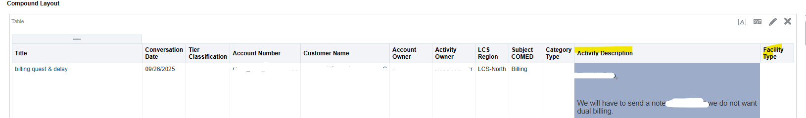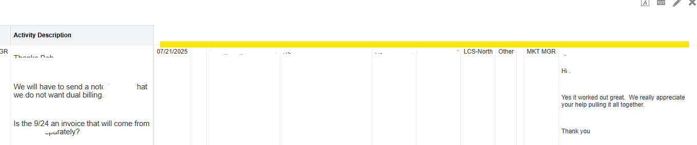 I have an odd problem with my report. When the 'activity description' column is at the end, additional columns are showing at the right. When it is placed before any column, there is no additional fields at the right.
