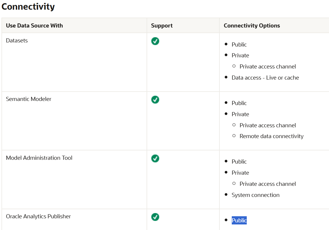 OAC BIP Snowflake database Connectivity support for PAC(Private)
