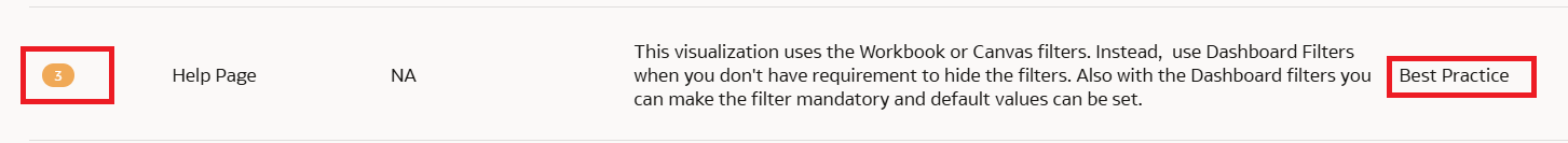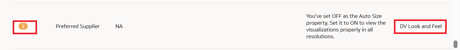 Reason – Indicates whether the provided recommendations are evaluated based on Performance, Best Practices, and DV Look and Feel criteria.