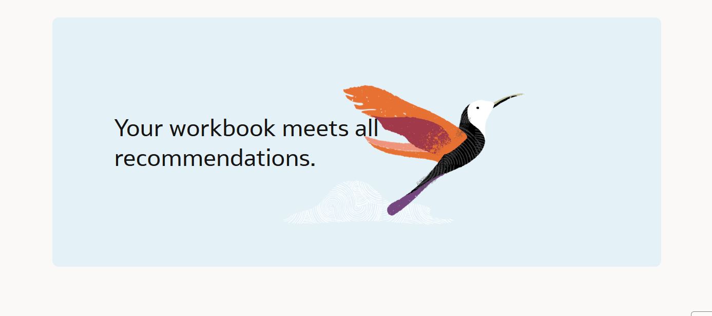 Note: A well-designed workbook that follows best practices will display the following results when evaluated using the workbook check-up tool.
