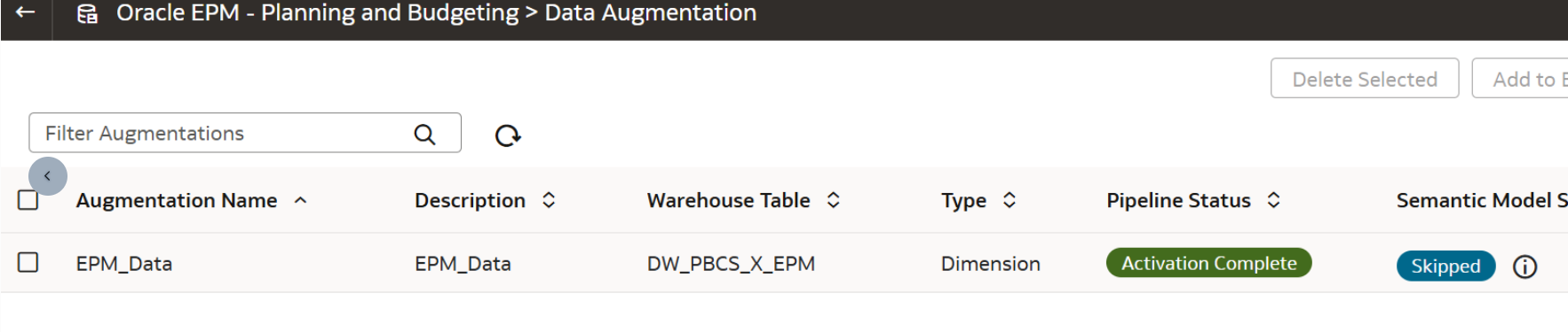 Semantic Model Status "Skipped" on Oracle EPM Data Augmentation
