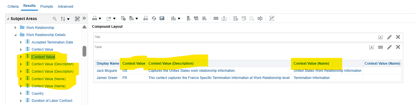 Context Value in Work Relationship subject area