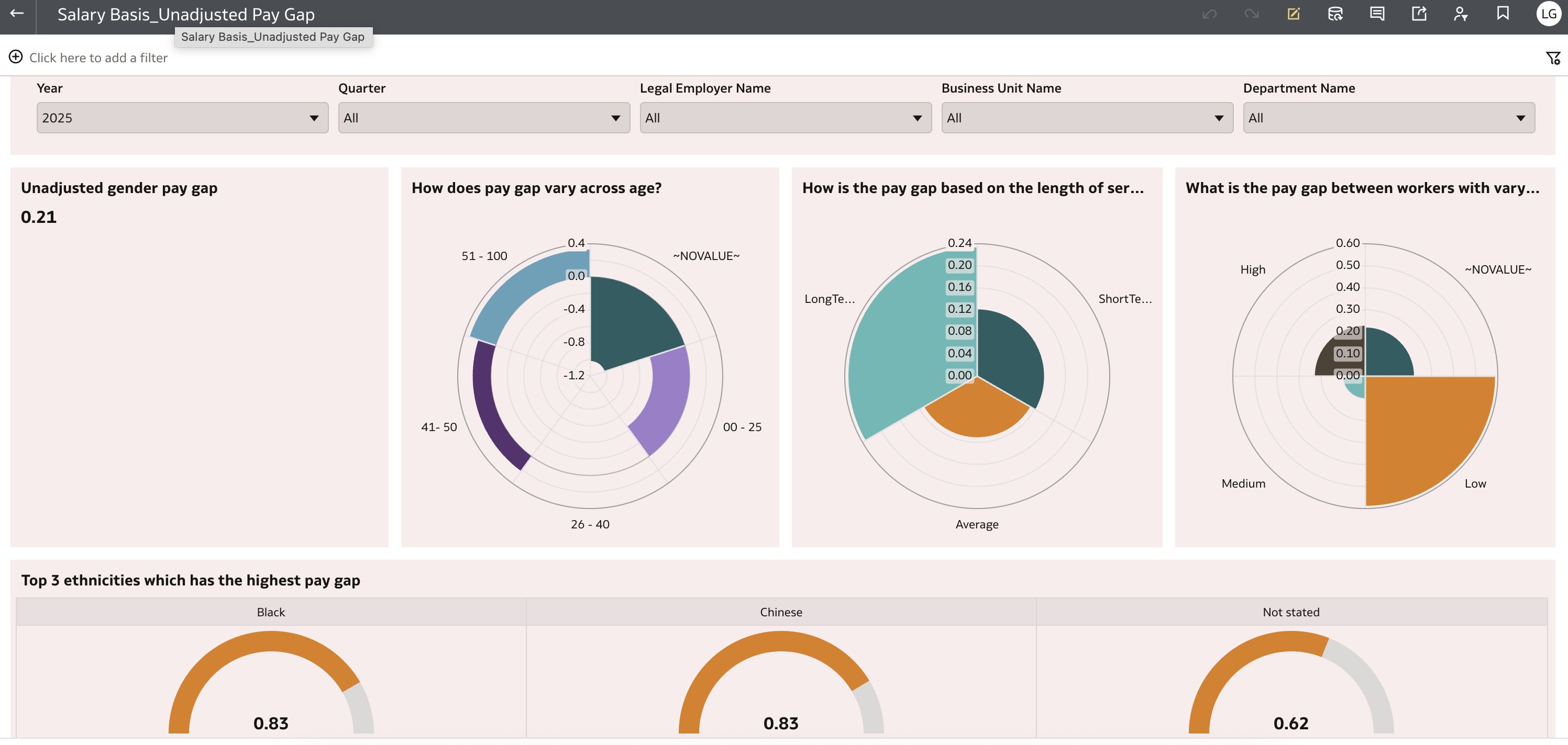 In the 25R3 release, we have introduced a new KPI for the HCM – Workforce Rewards – Salary Basis subject area: Unadjusted Pay Gap. This KPI provides insights into the pay disparities.