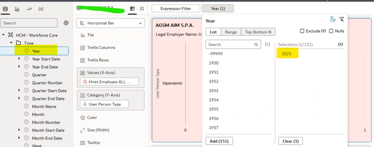 We are using the Year object under Time folder but if we use it all data seems lost, are we doing anythig wrong?