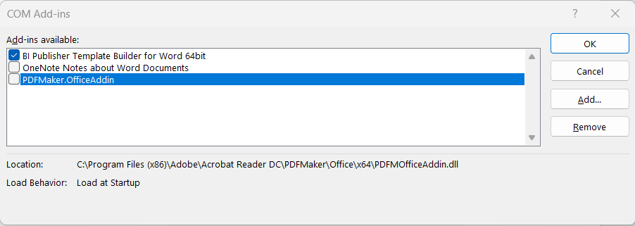 After successfully executing the newest Analytics Publisher Add-In Installation-File (OracleAnalyticsPublisherDesktop-8.2.0-win64.exe) the BI-Publisher-Word-Add-In isn't visible, even though it is listed as enabled under Options/Add-Ins.
