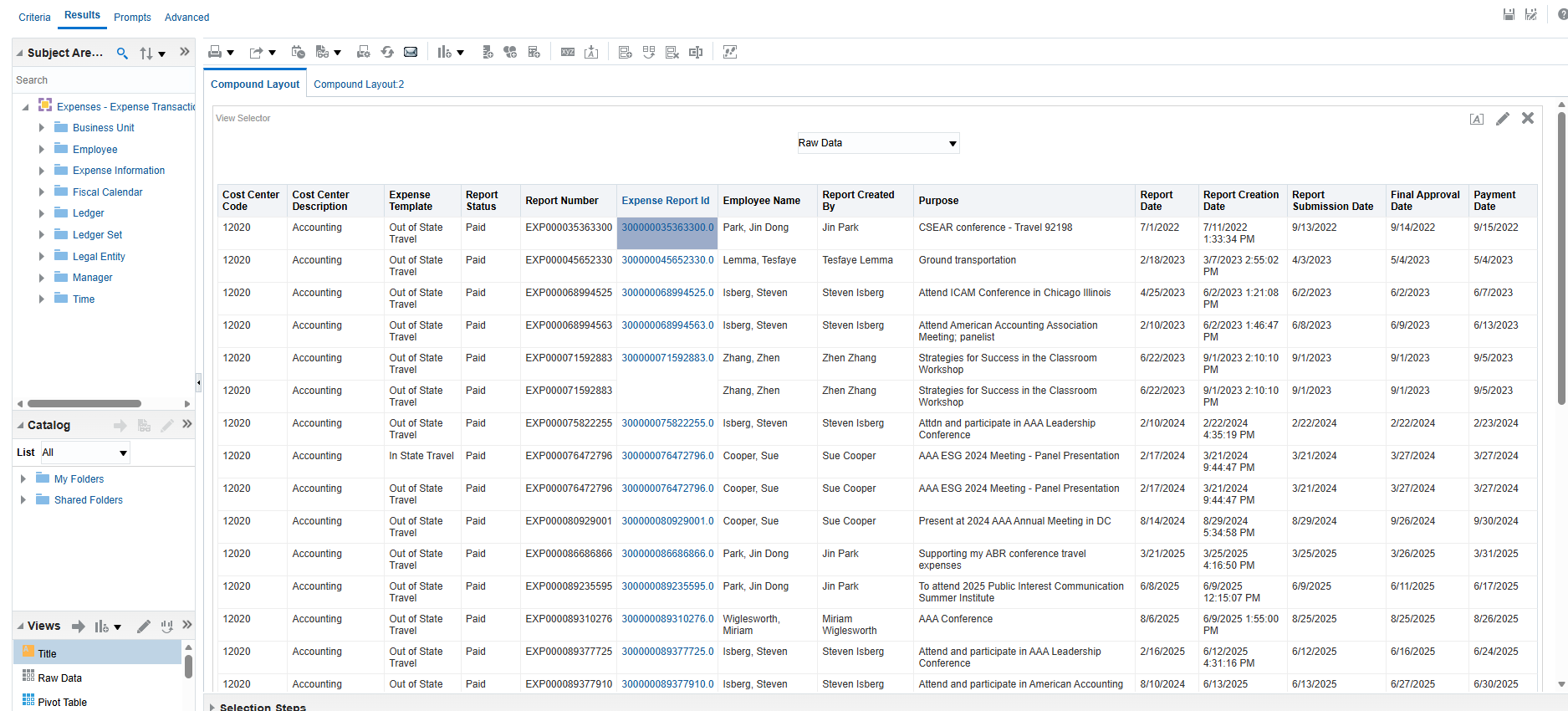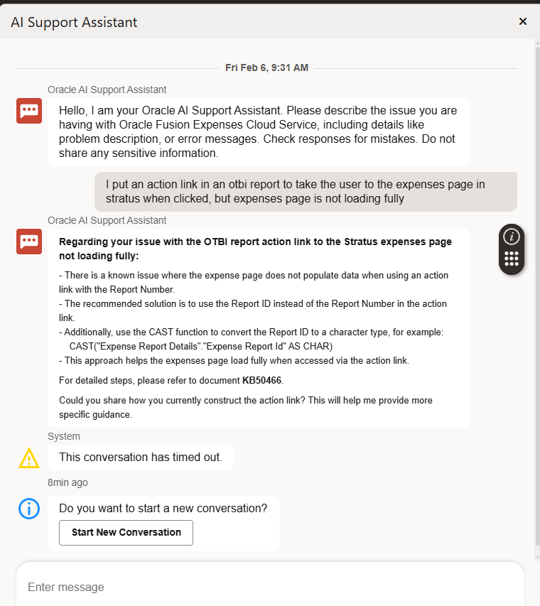 I am trying to create an action link in an otbi report related to expense report info. Currently the action link is attached to the report number field- but apparently there's a known problem with doing that and I've been advised to use expense report id instead of report number. I'm also following directions from oracle white pages on doing a drill down from OTBI adhoc reports to Expense Reports. I'm successful in getting another window open to stratus but the page is white and blank. Nothing loads- or sometimes like 1/4 of the page loads and the rest stays white. This is happening when I used both report number and expense report id. Anyone actually have success doing this?
