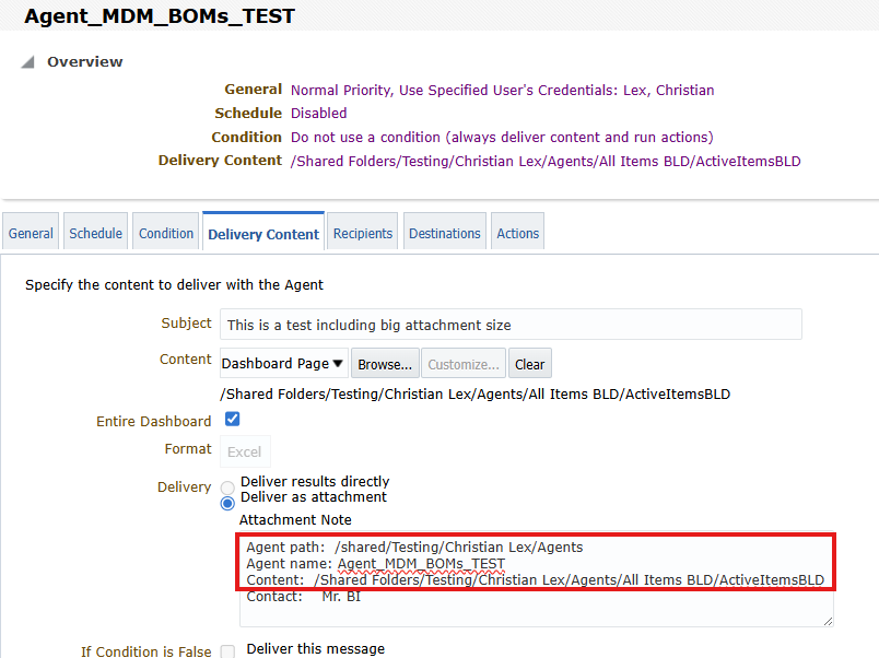 We have hundreds of agents where the path of the current location, a full path or a catalog element name is being added, e.g. into the attachment note under delivery content of an agent, example below.