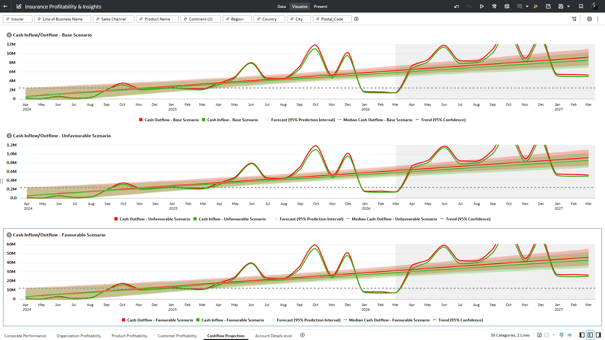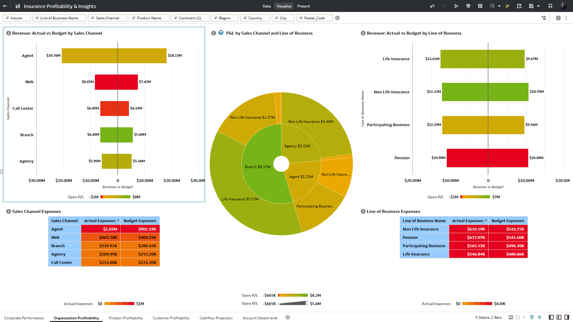 • Can you provide their channel and line of business profitability details in bar chart?