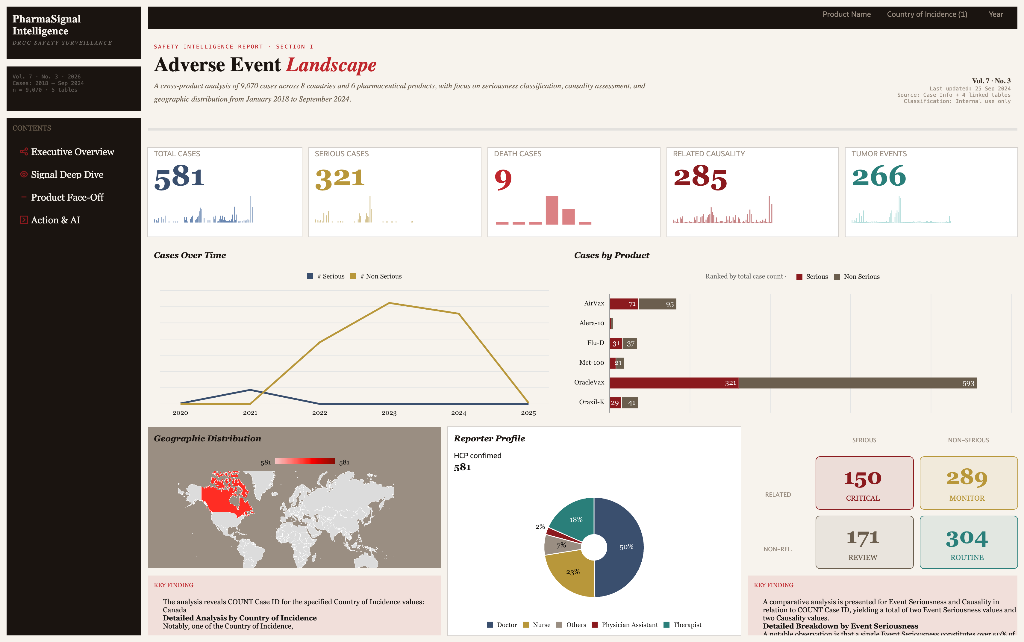 • Product Face-Off — comparative analysis across drugs and vaccines to identify product-specific risk profiles