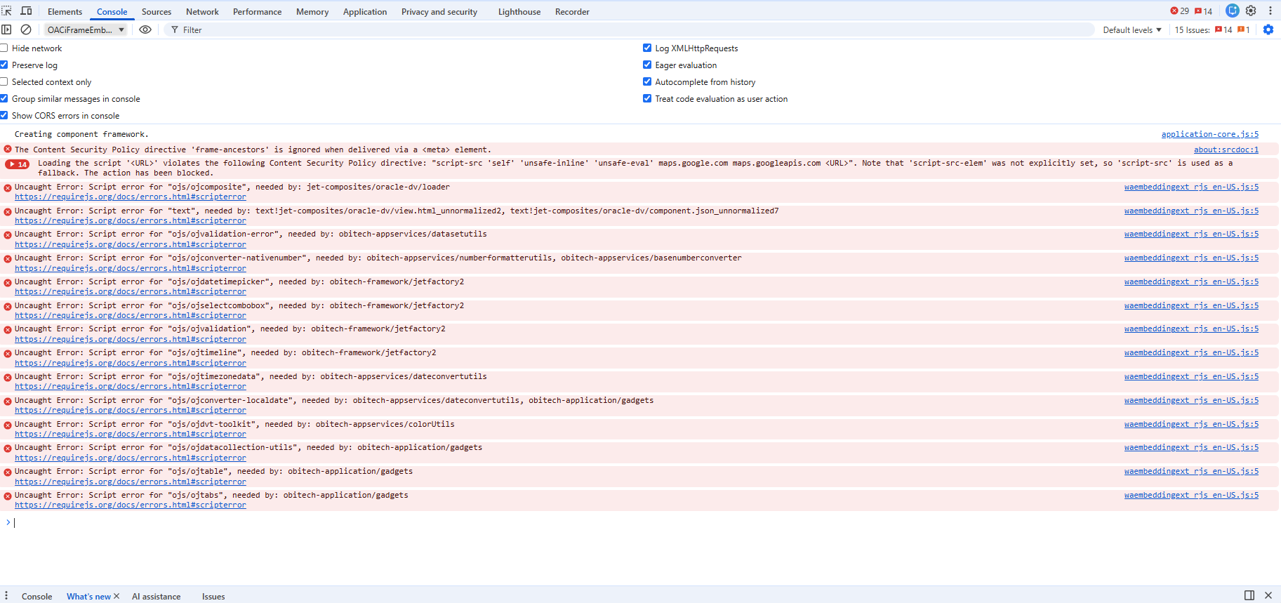 Hello OAC Community .We observed today (26-Feb-2026) our embedded AI Assistant is automatically not being displayed on the web page .This was working fine from last couple of weeks .On the console we're seeing the errors as shown in below screenshot :