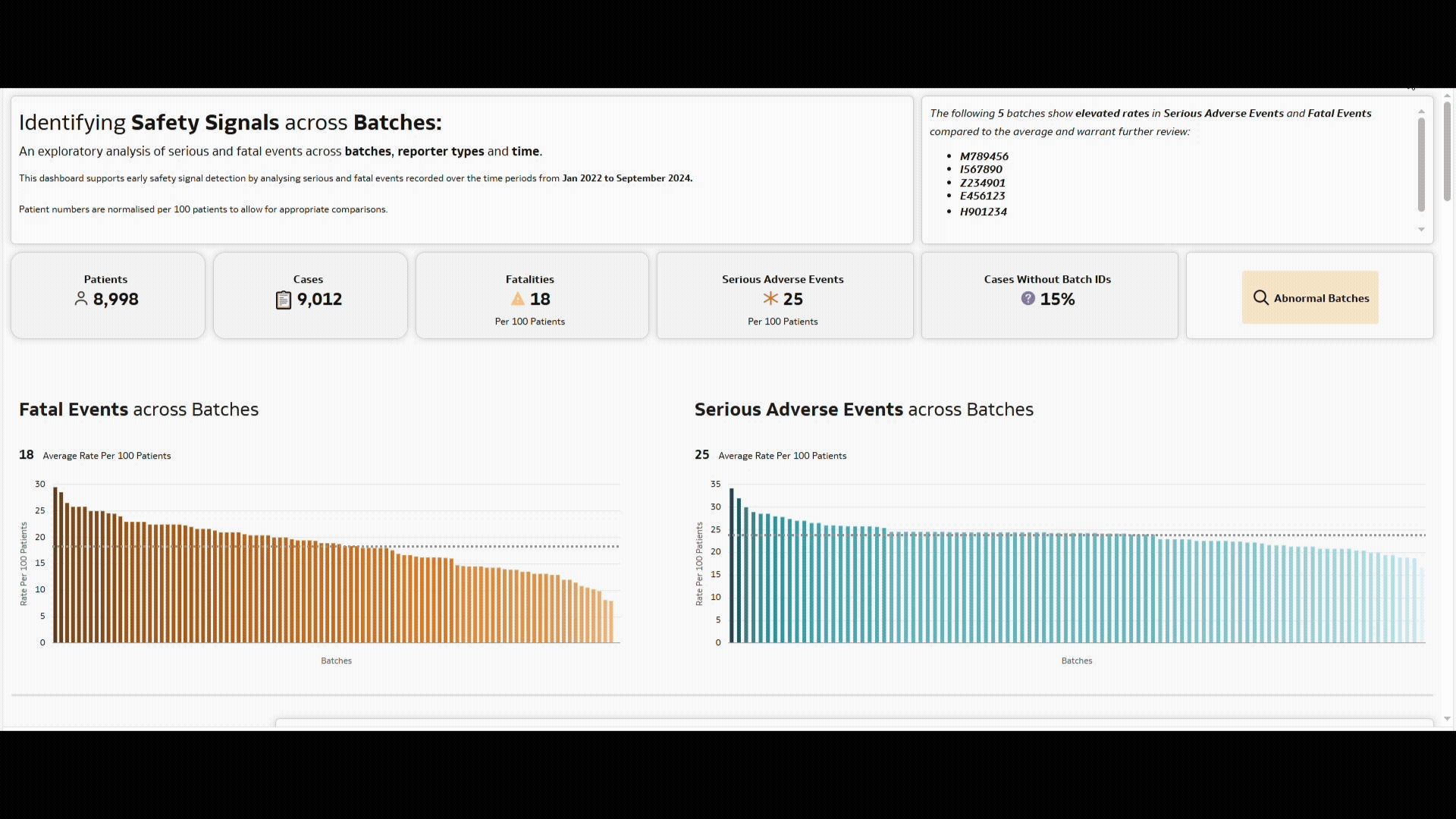 - Are any batches exhibiting disproportionately high SAE or fatality rates?
