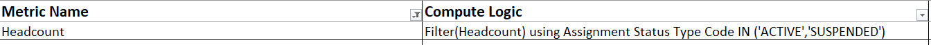 Is there a reference document that describes how the FDI delivered measures are calculated? In testing we want to be able to cross check what FDI shows against similar reports in the same environment. For example, how is the delivered "Headcount" measure calculated (Active only, Active + Suspended, current date only, etc.). Thank you!