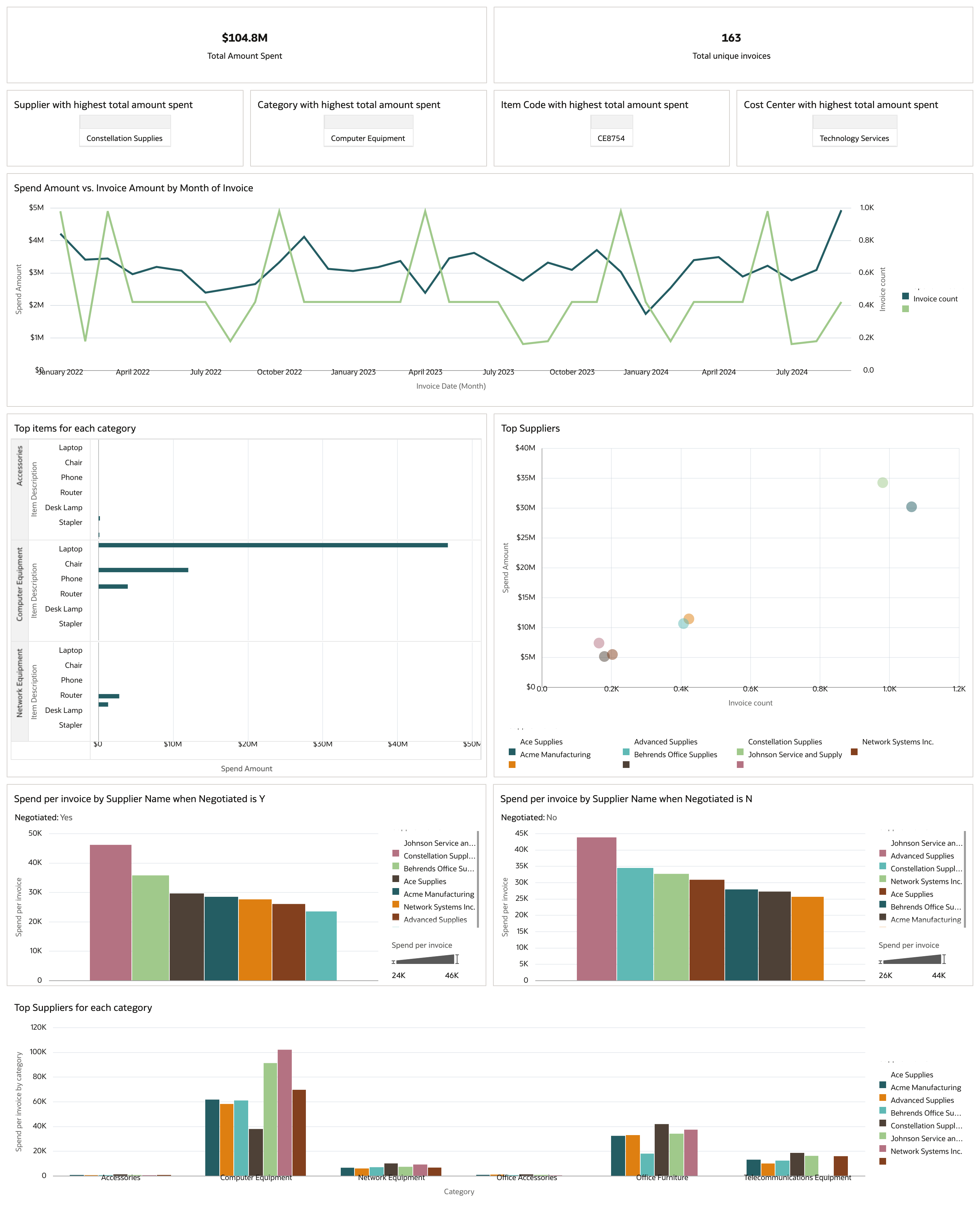 Spend Analytics helps find the top supplier, item, cost center from the spend data.