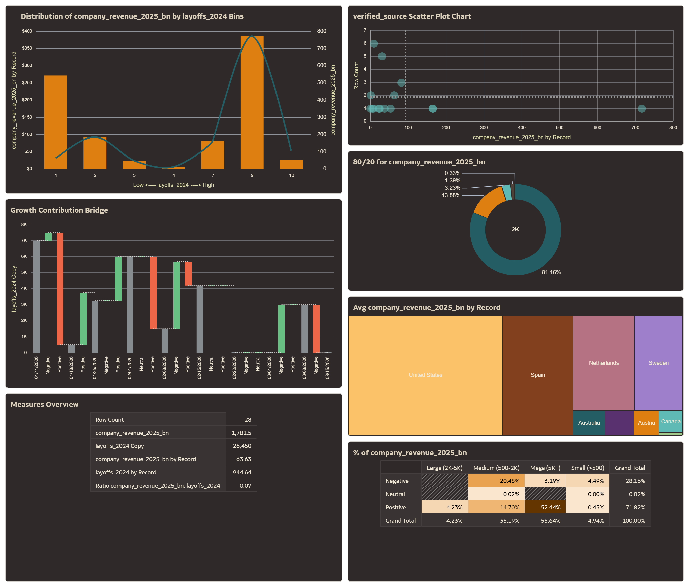 The 2026 tech layoffs affected over 103,000 workers in just one quarter, with Oracle, Amazon, and Meta leading the cuts. About half the companies cited AI tools as the reason, replacing roles like customer support, QA, and middle management. The hardest-hit workers were in software, fintech, and SaaS sectors, while manufacturing and retail also saw significant job losses. Most companies saw their stock prices rise after announcing cuts, showing investors viewed it as a positive efficiency move. The visualization helps make sense of all this by letting users filter, compare, and explore the data across companies, sectors, and regions in one simple dashboard.