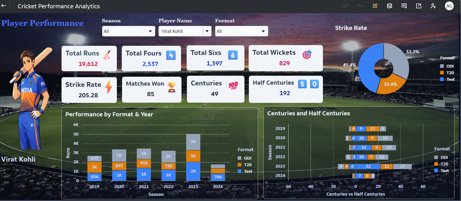 Player details (Player Name, Format, Season/Year)