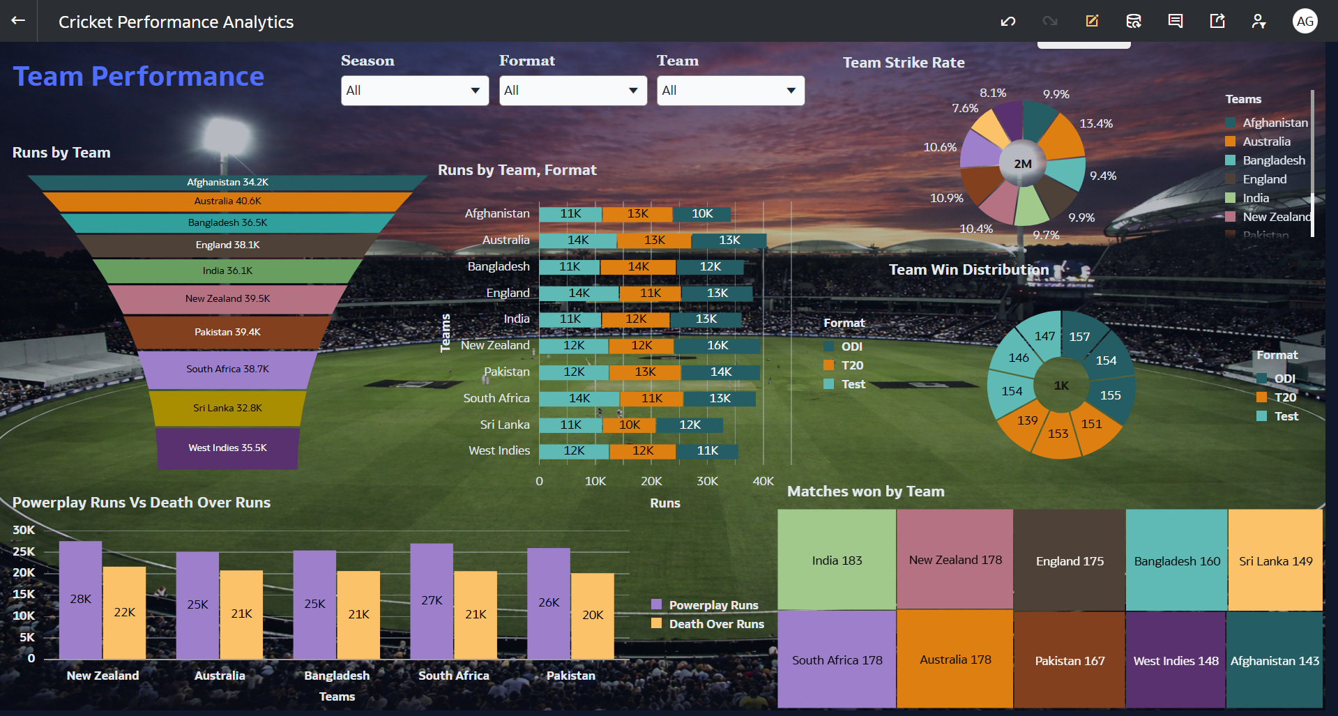 Grouped data by Format (ODI, T20, Test)