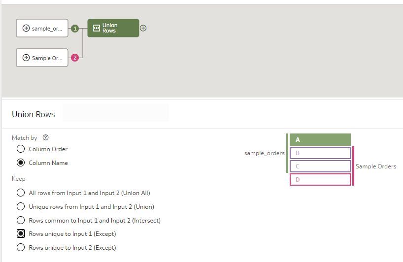 Doing first a unique to Input 1 and then a unique to Input 2 or common rows and counting them and things like that.