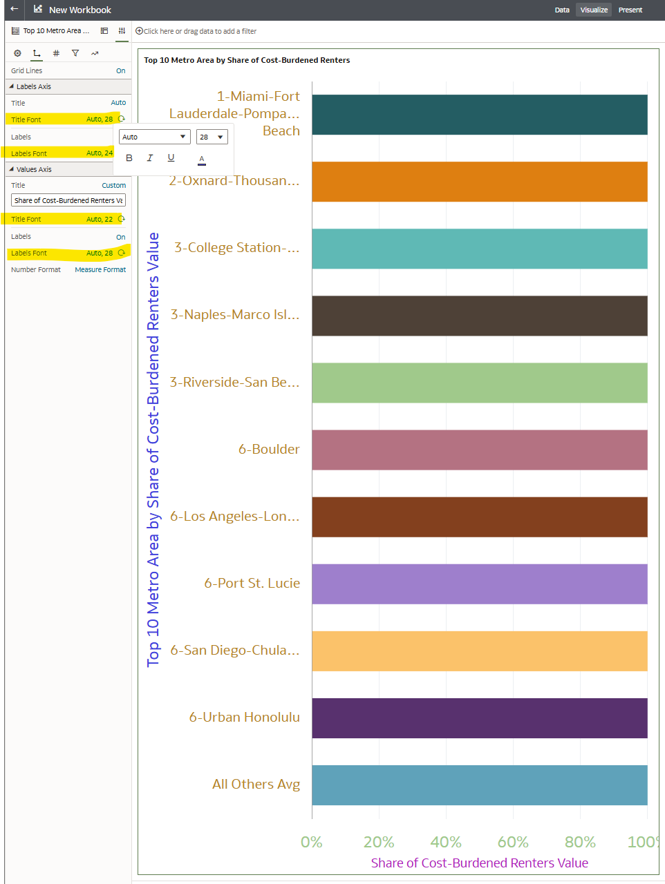 - Select "Auto" in theTitle Font or Labels Font (highlighted in yellow).