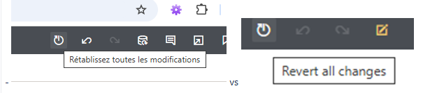 For example, This button in english says : “Revert all changes” and its translation in french “Rétablissez toutes les modifications”