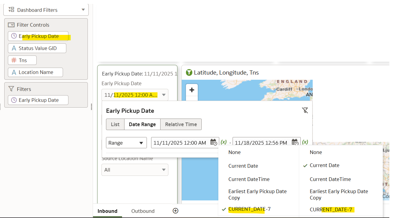 We have defined a date filter dashboard with parameters with from current_date-7 to current_Date: