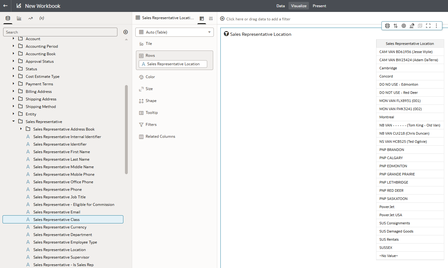 Hi @Vismay Barot , You might want to check the data type of the Sales Representative Location column. It looks like you’ve applied a filter value of 18, which is numeric, but the column might actually be stored as text. That type mismatch is likely causing the ORA-01722: invalid number error.