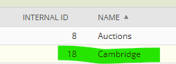 Please Note 18 is just an Internal ID for My Select Filter for "Cambridge":