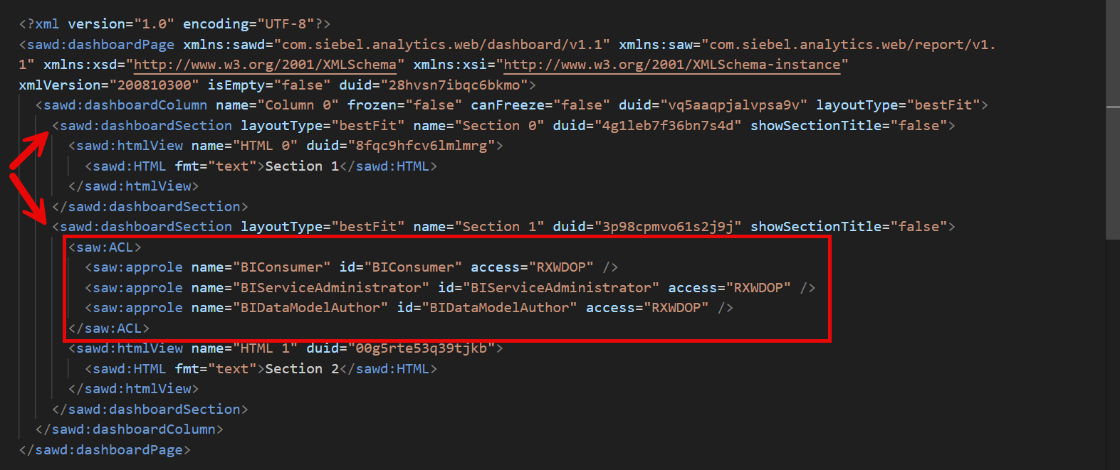 I am trying to use runcat command to monitor and control user permissions of catalog objects such as dashboards and analysis . But we've come up with a problem that we are unable to print out objects under dashboards such as 'section' object . I am adding some images to about the object we need help with.
