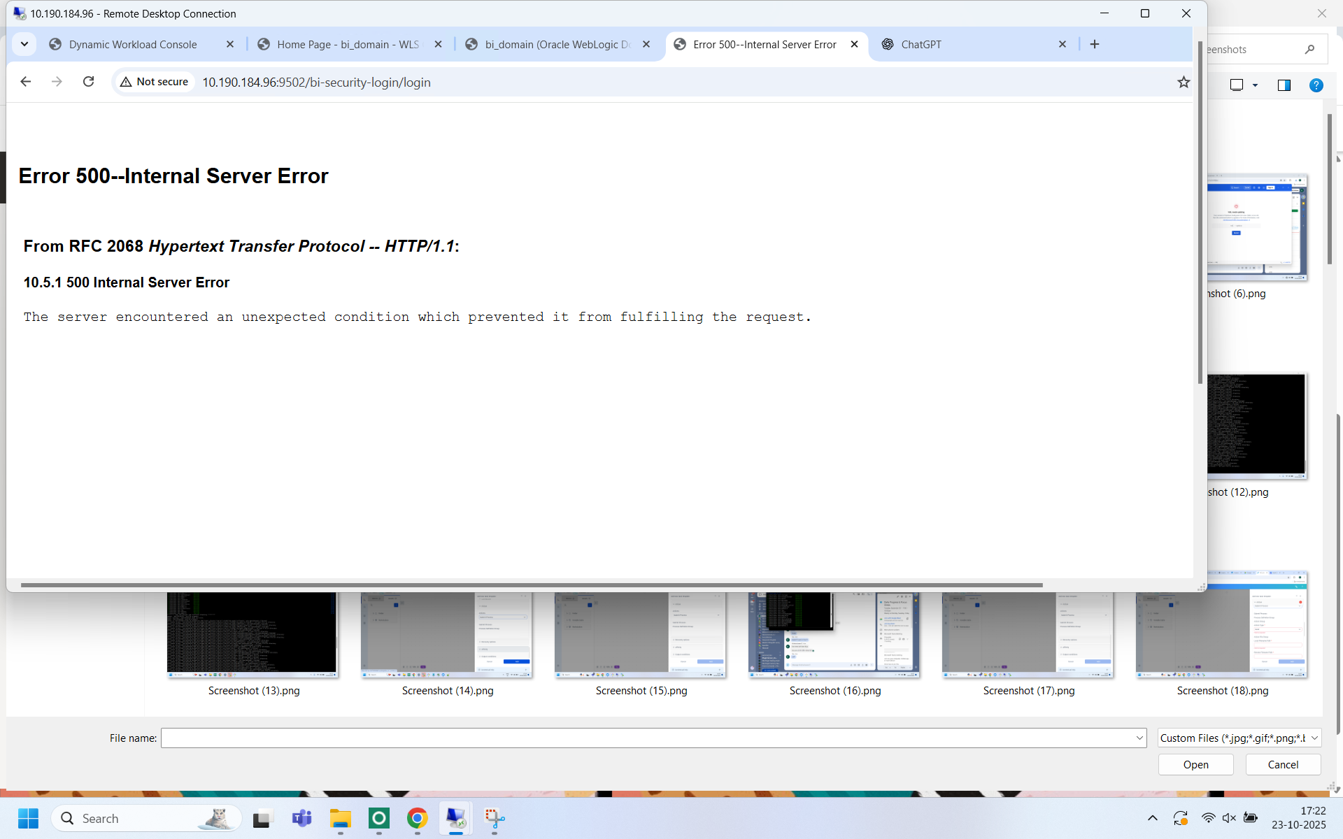 Error 500--Internal Server Error From RFC 2068 Hypertext Transfer Protocol -- HTTP/1.1: 10.5.1 500