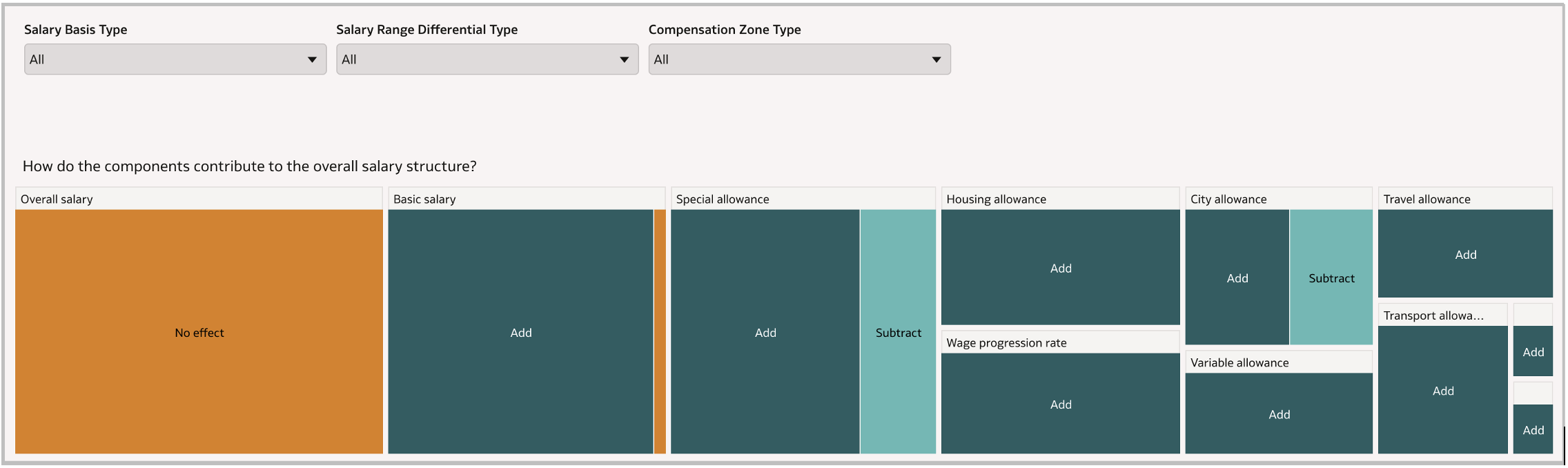 The visualization presented below provides information on how each of the configured component affects the overall salary structure.