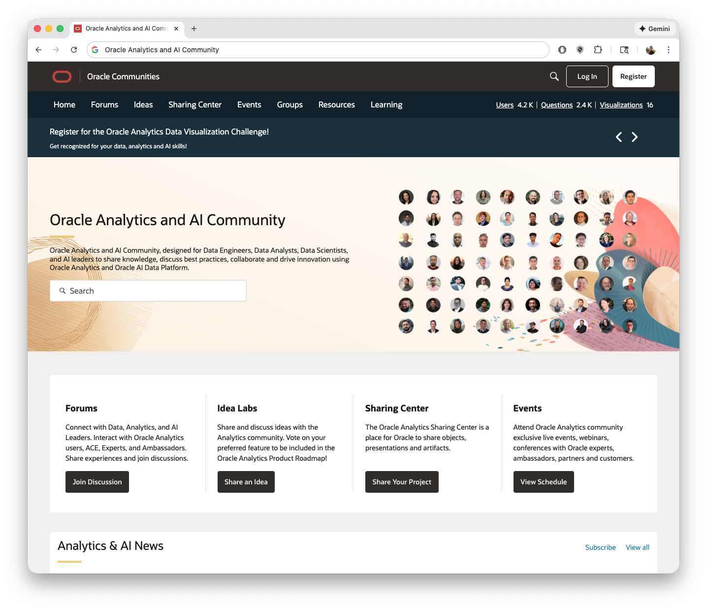 The new Oracle Analytics and AI Community will provide simplified place for all our Analytics and AI community members.