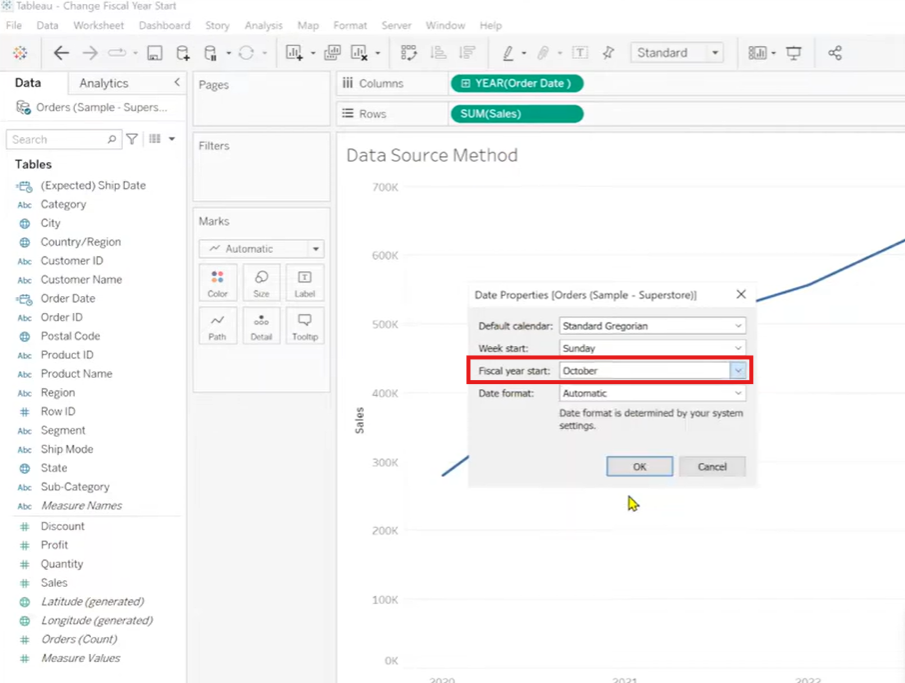 @Michal Zima I agree that this could be done with a separate fiscal calendar dimension. This is how I'm doing it today. It's also how it's done natively in FDI. My hope is to make it easier. When you have many "dates" in a dataset, you don't want to join to a dimension every time. Having the ability to control the fiscal calendar start date at the console level, or even just at the workbook level, would make it much easier. I understand that this can be done in Tableau easily. In the video below, you can see a few options that Tableau has to offer. I'm hoping OAC can adopt some of these benefits.