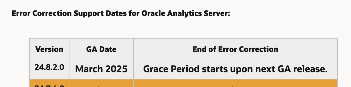 Reference - Oracle Analytics Server Error Correction Support Policy and Dates - KB467151